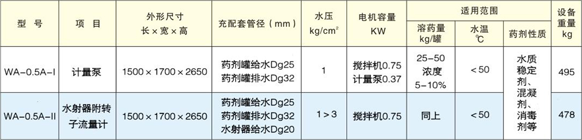 本公司生產(chǎn)的WA系列加藥設(shè)備是專供投加水質(zhì)穩(wěn)定劑、混凝劑、消毒劑等多種性能的水處理藥劑。