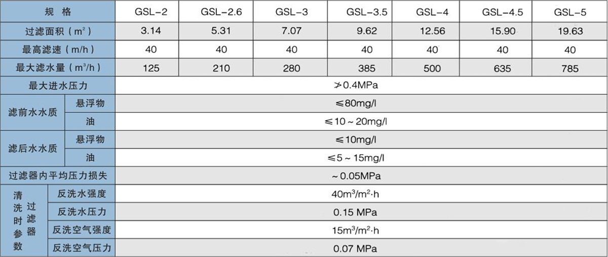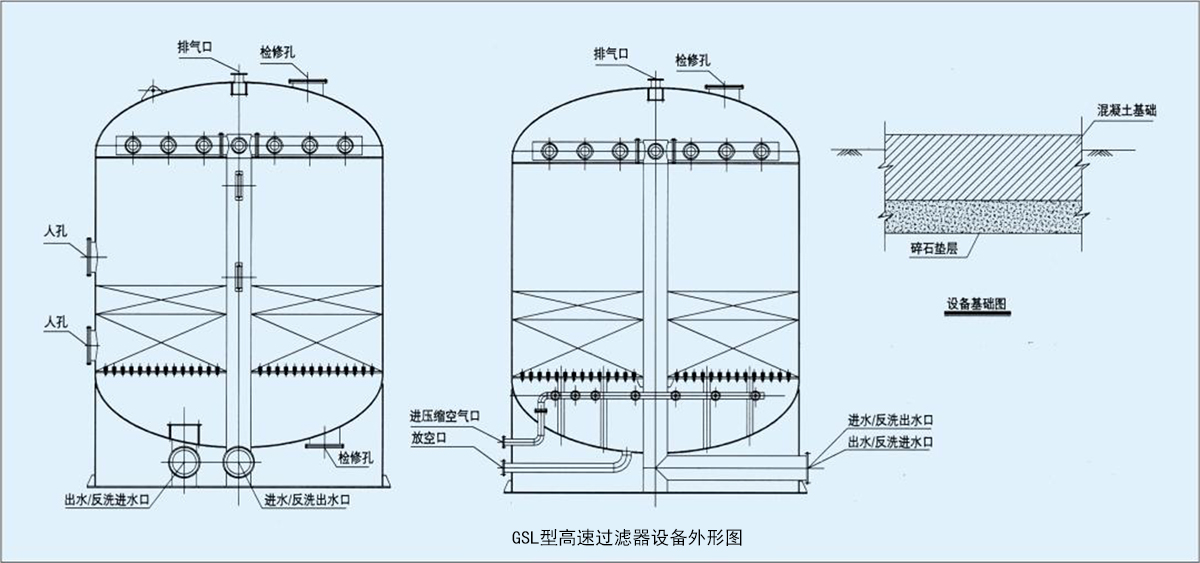 GSL型高速過濾器在原水懸浮物較多的情況下能確保出水水質(zhì)的高質(zhì)量,具有過濾速度高、處理水量大,占地面積小等優(yōu)點(diǎn)。