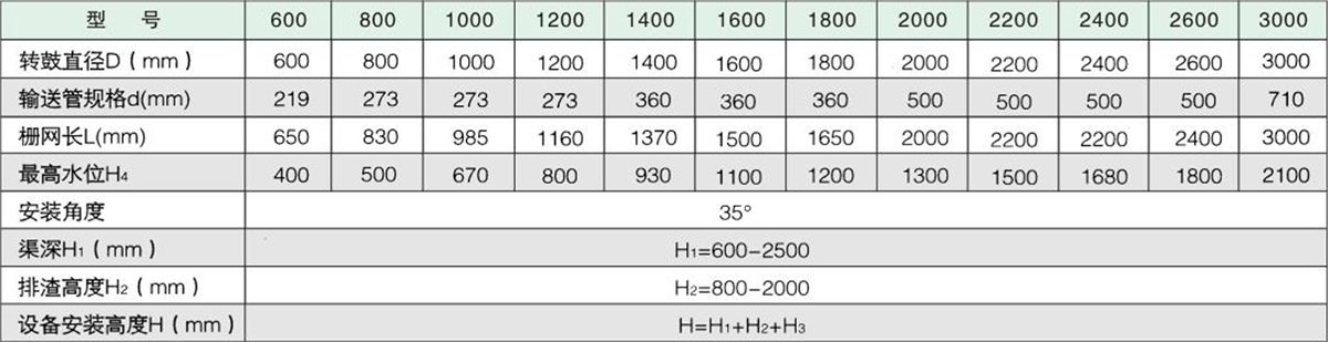 該設(shè)備與水平面成35度安裝在水渠中,污水從轉(zhuǎn)鼓的端頭流入鼓中,水通過(guò)轉(zhuǎn)鼓側(cè)面的柵縫流出,格柵將水中的懸浮物、漂浮物等留在轉(zhuǎn)鼓中,轉(zhuǎn)鼓以一定的速度旋轉(zhuǎn),鼓的上方有尼龍刷和沖洗水噴嘴,將柵渣清除并通過(guò)螺旋輸送運(yùn)轉(zhuǎn)擠干,脫水,運(yùn)至上端排料斗,經(jīng)輸送機(jī)運(yùn)走。
